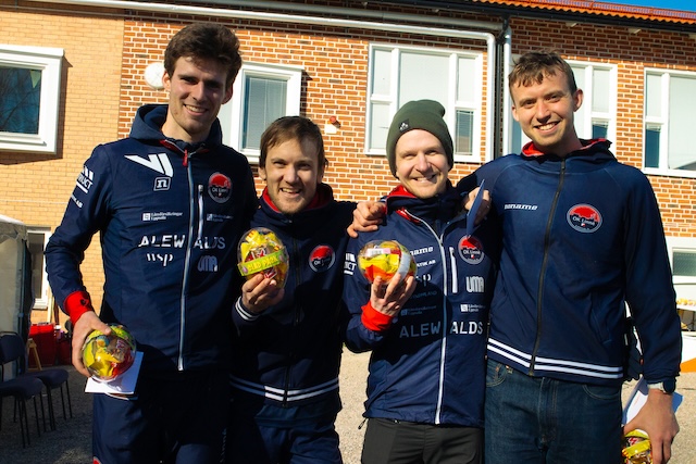 Herrlaget tvåa i Måsenstafetten. FV: Kornelius, Albin, Rassmus, Rasmus (Foto: Erik Barr Zeilon)
