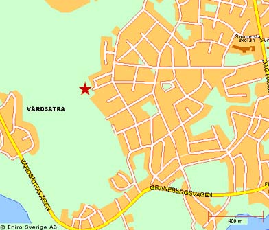 Särtryck Vårdsätra skog (Upsala IF, 1999). Skala 1:7500. Ekvidistans 2,5 m. Stenar betydligt större än 1,5 meter finns redovisade på kartan. Lokala karttecken: mycket liten stig (- - -) och särpräglat träd (grönt kryss). Se kartprov. |