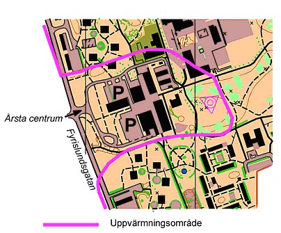 Årsta. Ojämnt reviderad och utskriven 2003. Skala 1:5 000, ekvidistans 2,5 m. Lokala tecken finns där grönt har med vegetation och svart med konstruerade föremål att göra. Se kartprov. |