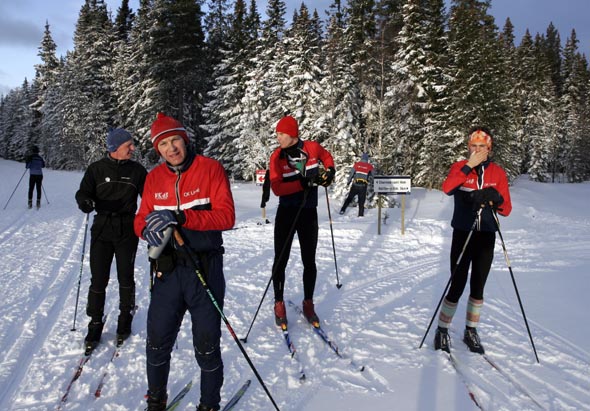 En välbehövlig paus utefter skidspåret, där olika behov uträttas.