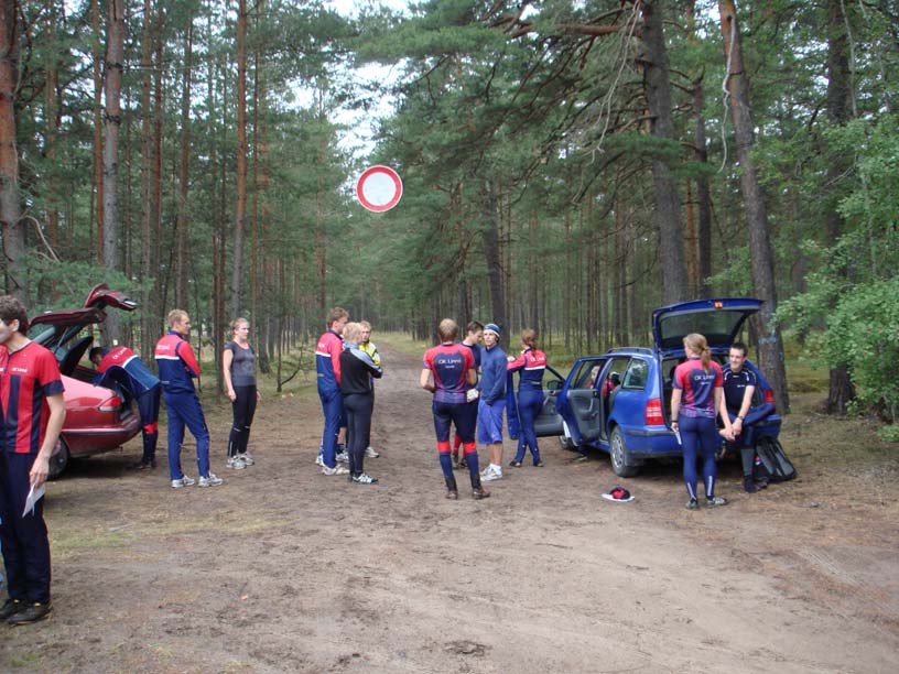 | Lite ombyte efter träning. Är det ett UFO eller en vägskylt som hänger bland träden?? |