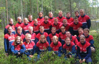 Lagbild på alla deltagarna vid en av de tusen sjöarna.